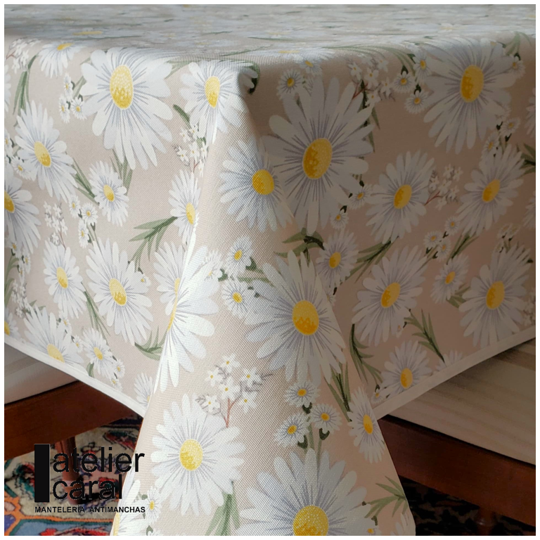 MARGARITAS BEIGE mantel 1,5 x 2,1 m antimanchas