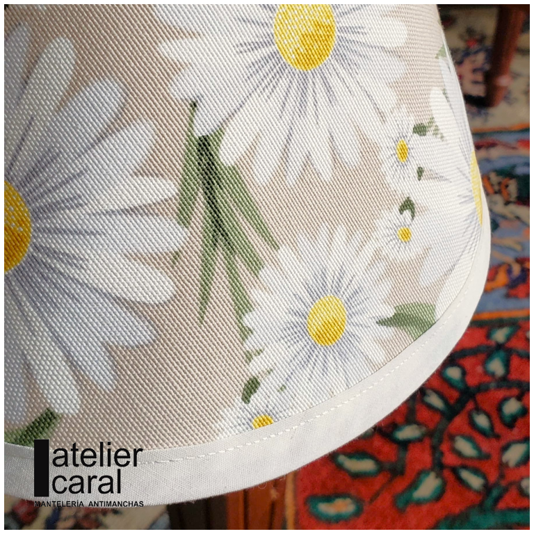 MARGARITAS BEIGE mantel redondo diámetro 1,8 m antimanchas